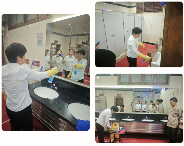 6月27日開展的第二期培訓聚焦“衛(wèi)生間深度清潔”專題。陳經(jīng)理系統(tǒng)傳授了玻璃清潔的“四步工作法”和異味治理方案,通過現(xiàn)場實操演練,幫助員工攻克日常工作中的難點問題。參訓員工紛紛表示,這種理論聯(lián)系實際的培訓方式讓他們獲益良多。