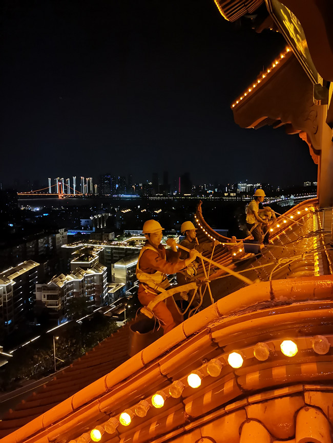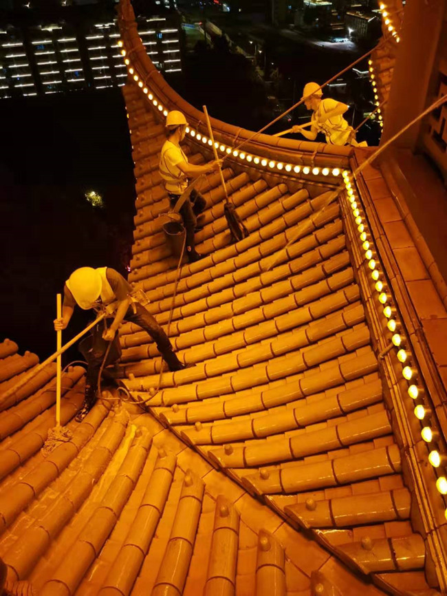為了不影響白天游客的正常游玩,我們的外墻清洗師傅們選擇在夜間施工,實(shí)現(xiàn)了對(duì)游客完全的零打擾服務(wù),但同時(shí)也對(duì)此次的清洗作業(yè)帶來(lái)了一定難度。