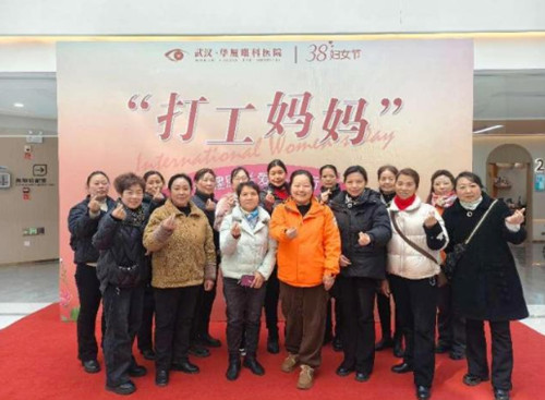 2025 年 3 月 6 日上午 9 時 30 分,由江漢區(qū)婦女聯(lián)合會主辦的 "打工媽媽" 眼健康關(guān)愛公益活動在武漢華廈眼科醫(yī)院順利舉行。武漢江城清洗服務(wù)有限公司近 20 名一 線女職工代表參與此次公益活動。